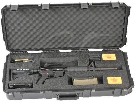 В кейсе вырезаны ячейки с высокой плотностью пены пригодной для повторного многоразового использования. 6 отдельных полостей служат для надежного удержания вашей AR системы и аксессуаров, области вокруг ячеек также имеют съемные вставки для максимально точной регулировки в зависимости от размеров оружия и аксессуаров. Изделие идеально подходит для более коротких, тактических, штурмовых винтовок общей длины до 35 дюймов.