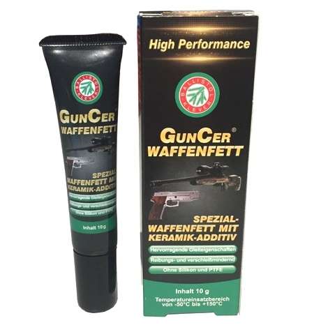 Оружейная смазка GunCer благодаря добавлению специальной керамической присадки и широкому температурному диапазону применения (от-50°С до +150°С) гарантирует максимальную защиту обработанных деталей от износа и коррозии. Для смазки всех скользящих соединений, например, направляющие затвора, ролики спускового крючка, стопоры, боевые выступы, шарнирные болты, а также в качестве вспомогательного средства для монтажа резьбовых и штифтовых соединений. Также идеально подходит в качестве монтажной пасты для установки сменных чоков. Обладает нейтральным действием на пластик, лак, дерево и вороненое покрытие. Белая специальная смазка с нейтральным запахом не содержит смолы и кислоты, а также тефлона и силикона. Керамическая присадка гарантирует антифрикционные свойства. Очень хорошие адгезионные характеристики без слипания или затвердевания!