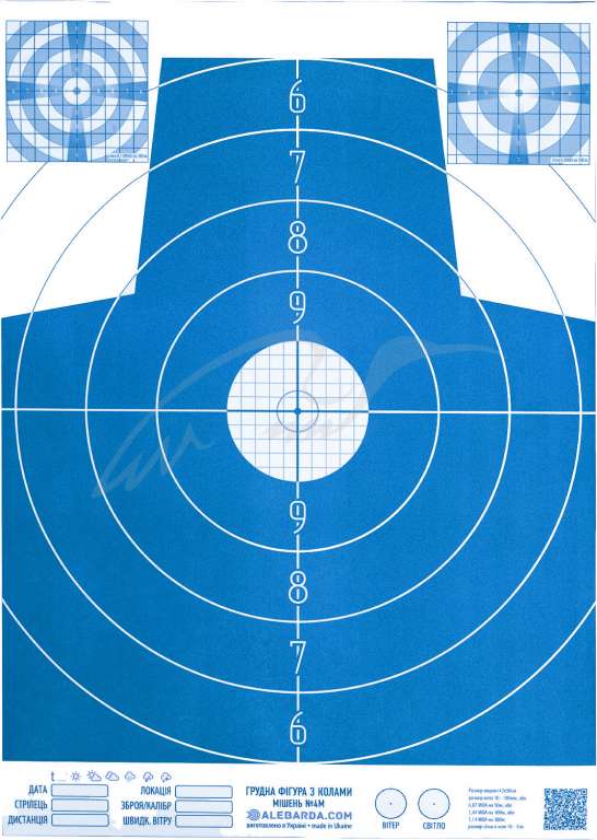 Улучшенная грудная мишень с кругами для пристрелки оружия, тактических упражнений, тренировок высокоточной стрельбы на дальних дистанциях. Синего цвета для повышения контрастности при работее с оптическими прицелами, а также в условиях как искусственного так и естественного освещения.