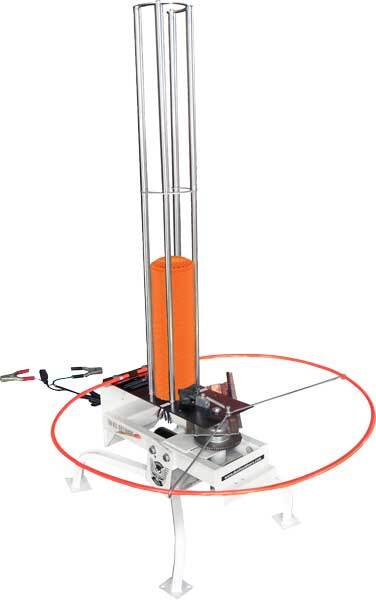 Кольцо безопасности, указывающее зону движения рычага. Метательный рычаг выполнен из авиационного алюминиевого сплава. Цикл запуска 2 секунды. Мишени подаются непосредственно на рычаг, снижая вероятность их повреждения. Машинка питается любой батарейкой повышенной емкости (в комплект не включается).
