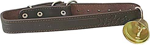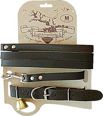 Кожаный ошейник с поводком для собак которые работают в загоне. Материал: натуральная кожа, металлическая фурнитура, колокольчик.