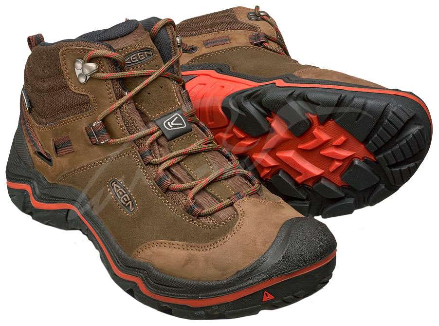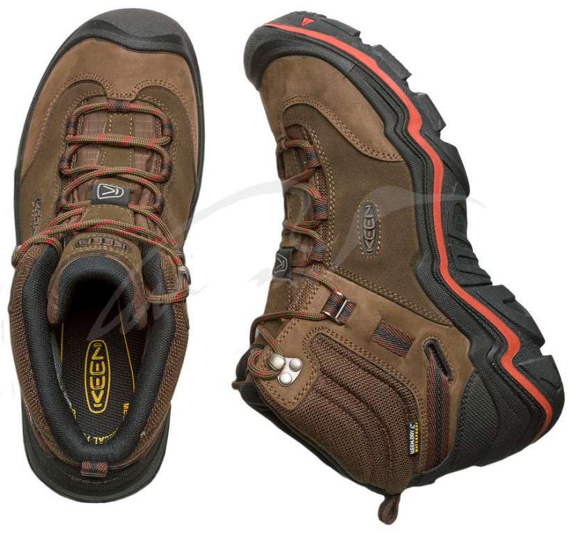 Черевики KEEN Wanderer MID WP призначені для любителів активного відпочинку на природі, туризму і трекінгу. Середній розмір халяви найкращим чином підтримує ступню і не заважає природної рухливості стопи. Модель оснащена фірмовою мембраною KEEN.DRY, яка захищає взуття від промокання, а також забезпечує хорошу вентиляцію, тим самим підтримуючи сухість і комфорт ніг. Підошва черевик доповнена інтегрованою підтримкою п'яти з технологією гасіння ударів, що буде особливо актуально при пересуваннях на пересіченій місцевості.