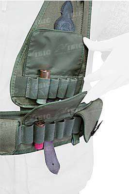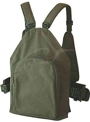 Матеріал: Натуральний водостійкий брезент з поліуретановим просоченням. На передній частині жилета знаходяться під-сумки для 35 патронів 12/16 калібру та два бічних кишені для аксесуарів. Рюкзак, розміщений на задній стороні жилета, має вентильоване відділення для дичини 48х35х14 см (з регульованим об'ємом), і зовнішня кишеня 31х25х5 см. Верхні і бічні затягування легко встановлюють необхідний розмір жилета. Зручну експлуатацію забезпечує пояс і наплічники з неопрену (4мм).
