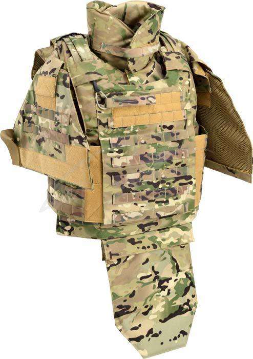 Жилет укомплектован нарукавниками, паховой и шейной накладкой. Специальные отсеки позволяют устанавливать керамические бронепакеты размером 250х300 и 150х150 мм. Так же жилет, и все его элементы, позволяет устанавливать в середину мягкие бронепакеты из кевлара или высокомолекулярного полеэтилена.
