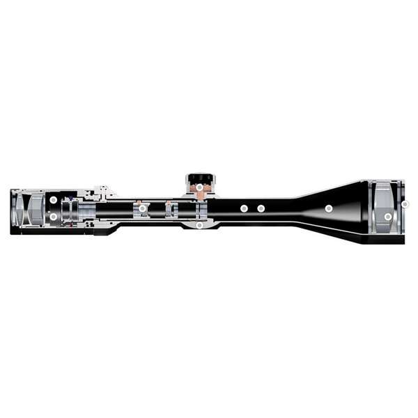 Ударостойкий корпус выполнен из легкого и прочного алюминиевого сплава. Как снаружи, так и внутри методом анодирования корпус покрыт черным матовым покрытием, которое не стирается, не царапается и обеспечивает отличные эксплуатационные характеристики. Все подвижные части корпуса имеют профилированную накатку, благодаря чему настройка прицела даже в толстых зимних перчатках не составит проблем.