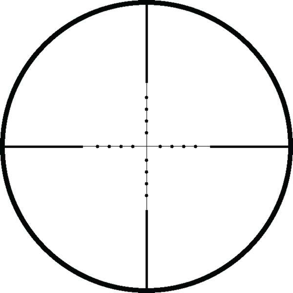 Mil Dot - одна из самых универсальных прицельных сеток, все компоненты этой сетки имеют строго регламентированные размеры, расстояния между всеми элементами также регламентированы. Благодаря этому не проблема определить расстояние до цели, приняв при этом правильную поправку на ветер и определить траекторию полета и падения пули. Данный Mil Dot верен при 10-кратном увеличении. Для других увеличений линейные и угловые размеры определяются методом интерполяции, либо по специальным таблицам. Персональную адаптацию сетки под конкретное оружие и тип снаряда позволит совершить бесплатный баллистический калькулятор.