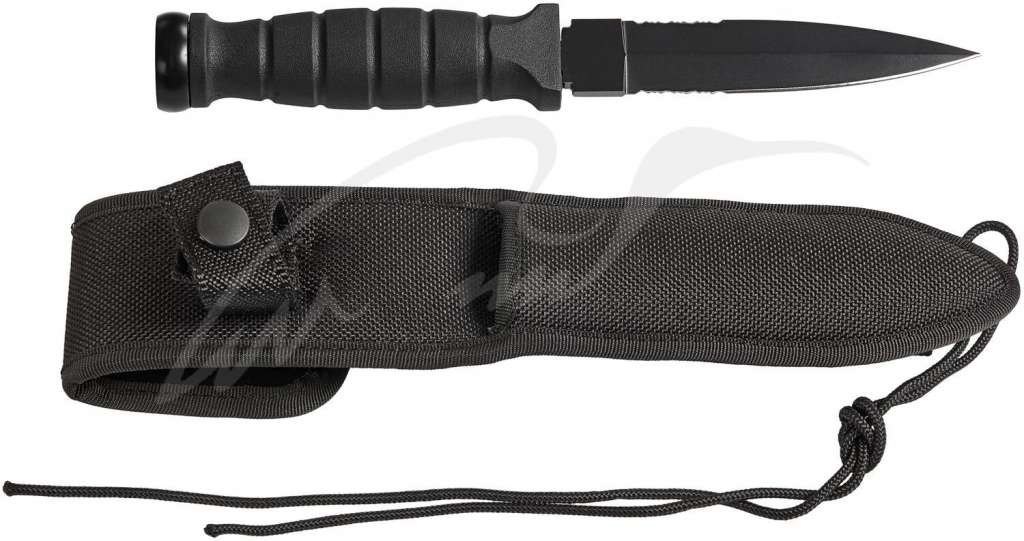 Относительно небольшой, но полностью функциональный нож для работы в полевых условиях модели Attack Small Dagger отличается оригинальной режущей кромкой. На обоюдоостром клинке имеются небольшие участки с серрейторной режущей кромкой, в то же время как обычная режущая кромка находится на большей части клинка. Такая консрукция повышает универсальность применения данного ножа. Клинок из 440-й стали с черным покрытием Idroglider. Рукоять кратоновая. Ножны - кордура.