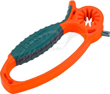 Благодаря V-образному точильному элементу из карбида вольфрама, затачивание сводится к трем-четырем движениям клинком. Угол заточки - 23 градуса. А удобная эргономичная рукоятка подойдет как правше, так и левше.