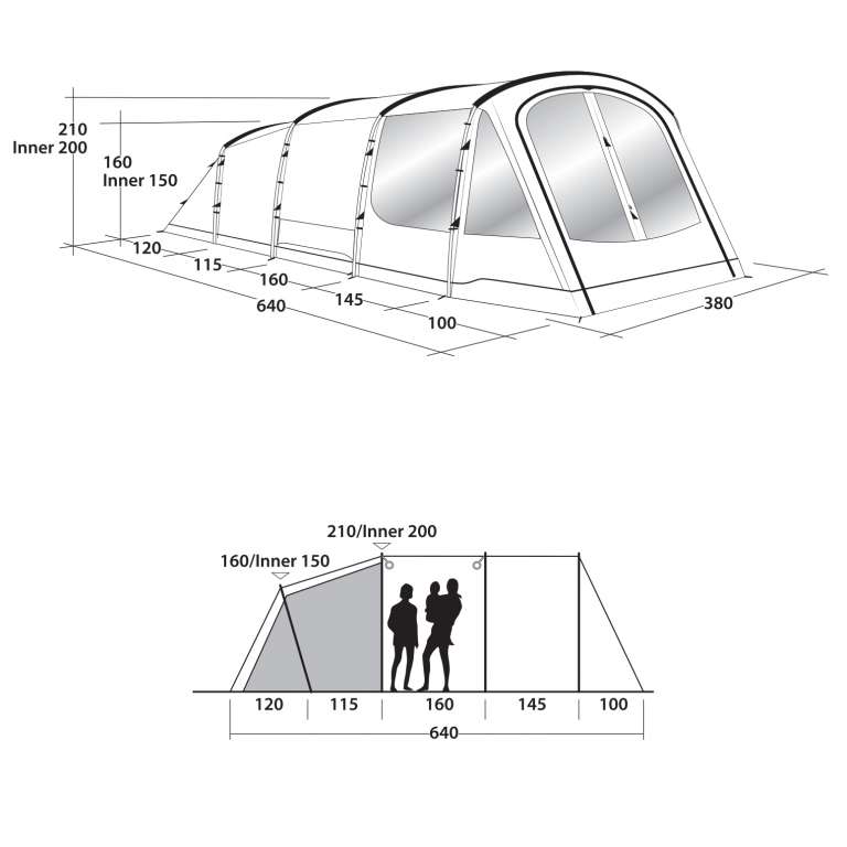 Внешний тент (Д х Ш х В): 640 х 380 х 210 см