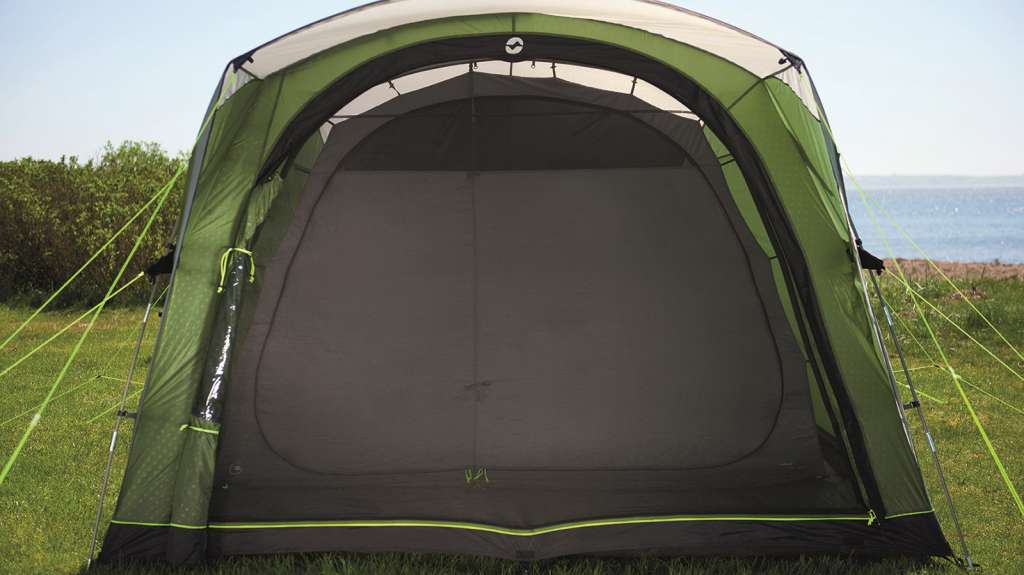 Outwell Easy Access System with mesh - главная дверь с анти-москитной сеткой скручивается в одну сторону, а пол палатки находится заподлицо с землей для безопасного и легкого доступа.