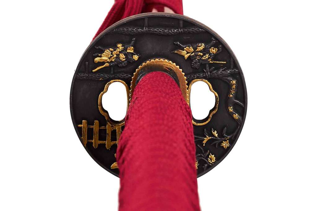 Богатый красный цвет, являющийся основным в оформлении этого меча, крайне важен в культуре Японии. Это цвет восходящего солнца. Считалось, что восходящее солнце приносит с собой не только новый день, но и саму жизнь. Что оно изгоняет тьму, страх и неизвестность. Красный цвет – цвет процветания и мира.