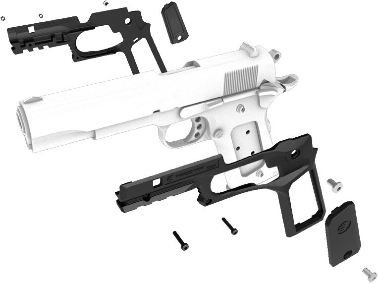 - Быстро и надежно устанавливаются на полноразмерные стандартные модели 1911, не требуя дополнительной модификации оружия.