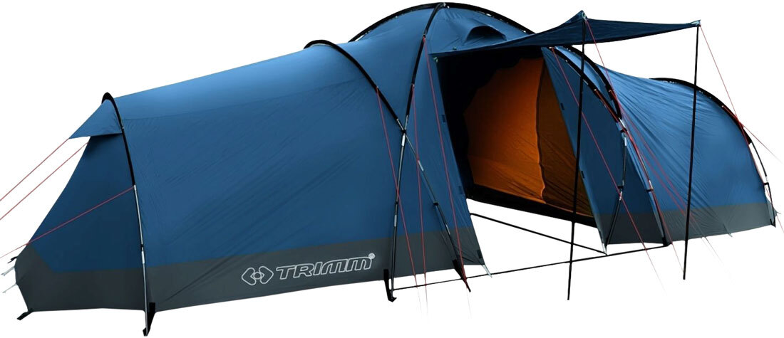 Большая кемпинговая палатка Trimm Galaxy II для комфортного отдыха большой компании из 8-10-ти человек. Внешний тент изготовлен из прочного полиэстера с водонепроницаемостью 3000 мм водного столба, две внутренние палатки сшиты из дышащего полиэстера, который отводит влагу и не позволяет образоваться конденсату, а пол сделан из прочного многослойного полиэтилена устойчивого к повреждениям. Каркас палатки сделан из прочного армированного стекловолокна - Durawrap, диаметром 9,5 и 11 мм. Одну входную дверь в тамбур можно использовать как дополнительный навес от солнца, на второй расположено прозрачное окно со шторкой. Благодаря высокому потолку в предбаннике можно разместить полевую кухню или столовую, а при необходимости можно использовать как дополнительную третью комнату. Основным преимуществом палатки Trimm Galaxy II являются две раздельные спальные комнаты. В каждой спальне предусмотрены внутренние кармашки и крепление для фонаря. В транспортировочный чехол вшита инструкция по установке. Каркасные дуги различаются по длине и промаркированы цветом, это позволяет упростить установку палатки. Ветровые растяжки со светоотражающими элементами надежно фиксирую конструкцию, благодаря чему палатка хорошо противостоит порывам ветра. В торцах палатки и над входом расположены вентиляционные клапаны. Палатка Trimm Galaxy II идеально подойдет для большой компании, которая любит отдыхать на природе.