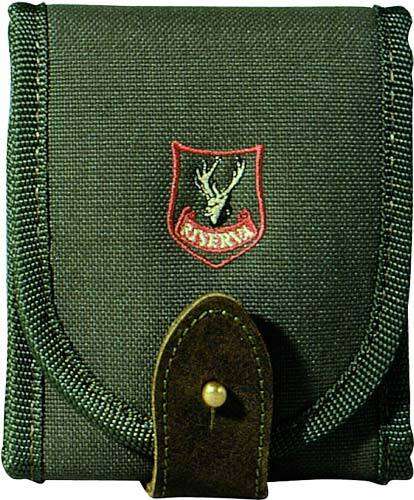 Патронташ Riserva R1364 пошит из прочной кордуры зеленого цвета. Есть петли для крепления на пояс. На клапане вышит логотип компании. Патронташ рассчитан на 7 патронов 30-х калибров.