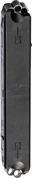 ASG CZ P-09 комплектуется пластиковым двусторонним магазином емкостью 8x2. Конструкция магазина позволяет использовать как стальные шарики (BB), так и свинцовые пули с плоской головкой (Diabolo).