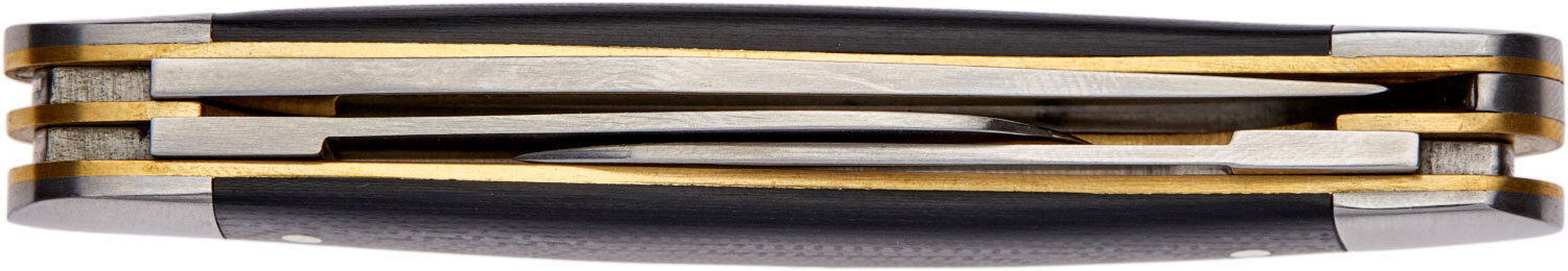 Клинки изготовлены из легированной нержавеющей стали 7Cr17Mov, которая благодаря ванадию в составе имеет повышенную прочность, износостойкость и ударную вязкость, а также сохраняет режущую кромку острой на продолжении длительного периода времени. Клинки извлекаются с помощью подпальцевой выемки и фиксируются самым простым и широко распространенным замком slip joint, который не даст ножу случайно сложиться и повредить пальцы.