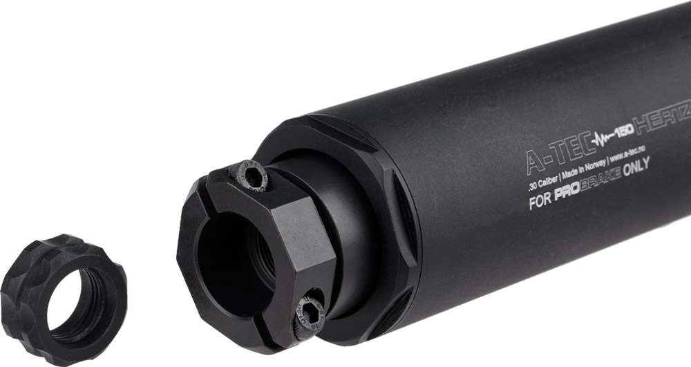 A-TEC 150 HERTZ - стандартный саундмодератор для охоты, рассчитанный на использование с калибрами «Магнум» и тяжелым стволом стандартной длины.