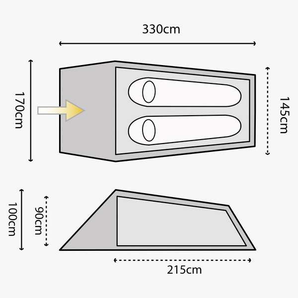 Начальная схема установки предполагает установку вннешней палатки, а потом внешней, благодаря чему внутренняя палатка остается сухой во время установки под дождем.