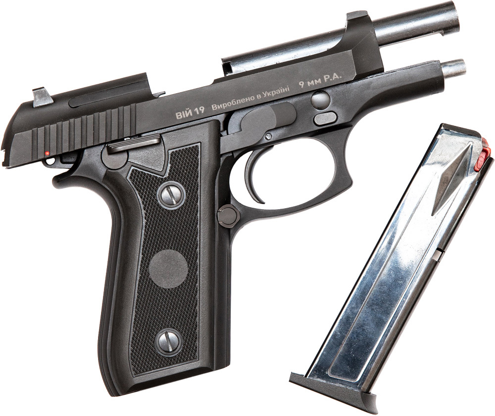 Многие любители оружия сразу же узнают в этом экземпляре черты всем известного пистолета Beretta 84 FS и будут абсолютно правы,. Действительно, Вий 19 конструктивно основан на бразильском пистолете Taurus PT58, который является клоном Beretta 84. В середине 70-х Beretta построила в Бразилии фабрику для выполнения контракта по перевооружению бразильской армии пистолетом Beretta 92. После исполнения контракта Beretta продает фабрику компании Taurus, которая в настоящее время является одним из крупнейших производителей оружия в мире.