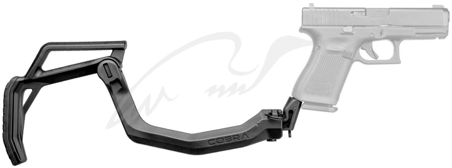 Складной приклад модели Cobra предназначен для установки на пистолеты Glock всех ныне существующих моделей. Установка производится очень быстро, при этом никакой модификации пистолета не требуется. В сложенном состоянии приклад не перекрывает шахту магазина и доступ к спусковому крючку, что позволяет без проблем стрелять и менять магазины. Также, пистолет со сложенным прикладом совместим с большинством кобур OWB.