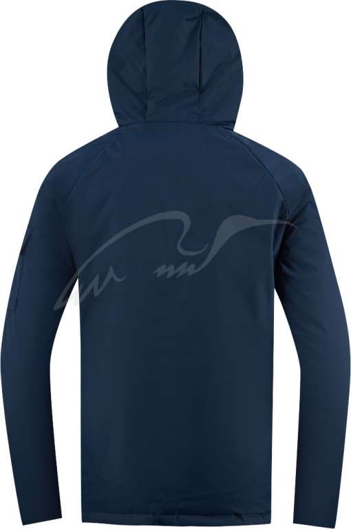 Куртка оснащена эластичными манжетами на липучках, и капюшоном, который вместе с высоким воротником-стойкой защитит голову и шею от ветра и дождя. Плотность прилегания к телу регулируется с помощью стяжки внизу изделия.