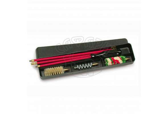 Набір для чищення в пластиковому кейсі, шомпол сталь в пластику, 3 йоржа (спіральний сталевий, щетина, пуховик)