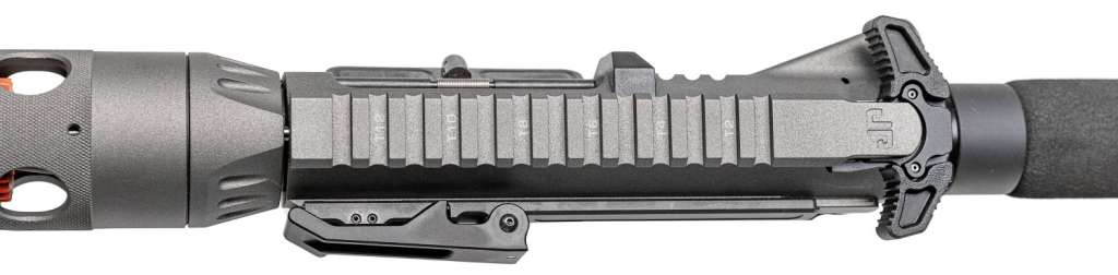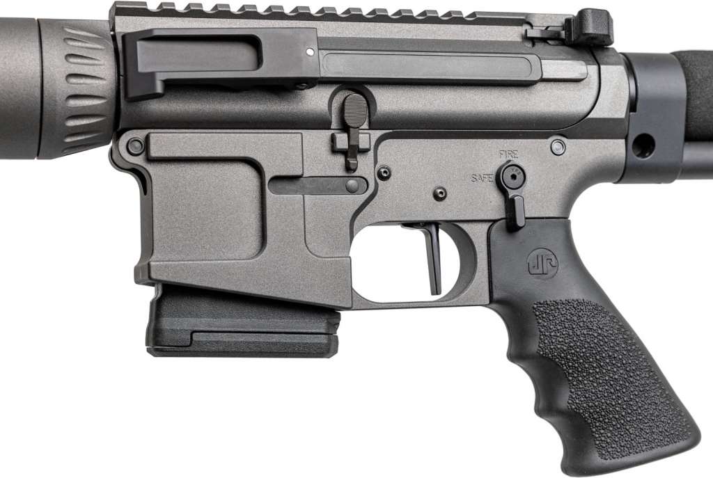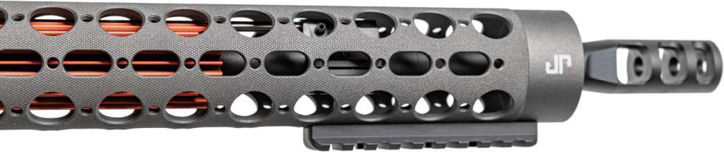 Верхний и нижний ресиверы отфрезерованы из цельных заготовок алюминиевого сплава марки 7075-Т6 с черным матовым анодированным покрытием. Установлено консольное цевье винтовочной длины «JP Modular Hand Guard» и прорезиненная пистолетная рукоять Hogue c эмблемой JP.