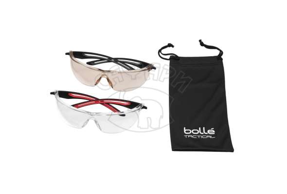 Окуляри для стендової стрільби Bolle GUNFIRE TACTICAL з комплектом балістичних лінз, сертифіковані за стандартами STANAG 4296 & EN172. У комплекті дві змінні лінзи: прозора лінза для стрільби в критому тире і лінза CSP для стрільби на відкритій місцевості. Лінзи окулярів покриті напиленням PLATINUM, що перешкоджає появі подряпин і запотівання. Змінні дужки (червоно / чорні, чорно / сірі). Міцний кейс для перенесення. Чохол з мікрофібри.