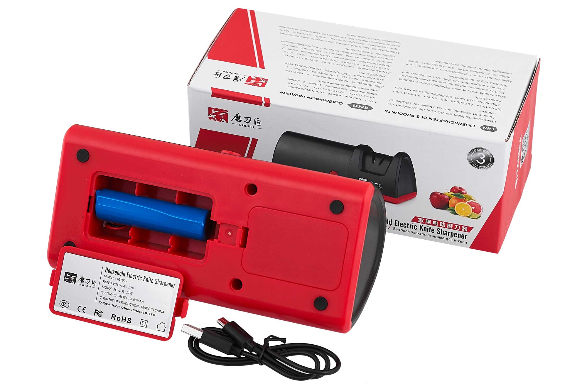 Напряжение тока, приводящего точилку в действие – всего 3,7 В, что делает её абсолютно безопасной, даже в условиях кухни. К тому же, данная модель снабжена защитой, отключающей её через 2 минуты после включения. Это полезно, как в плане снижения энергопотребления, так и с целью предотвращения разного рода неприятных неожиданностей.