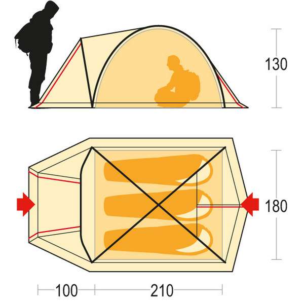 Внутренняя палатка (ДхШхВ), мм: 2100 х 1800 х 1300