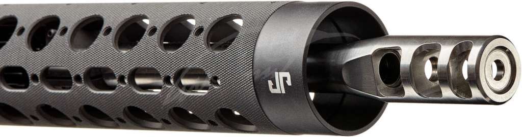 Свободно вывешенный матчевый ствол легкого контура «JP Supermatch™» изготовлен из нержавеющей стали марки 416R с применением криогенной обработки. Нарезы и поля нарезов формируются под давлением, методом «Button-rifling» – продавливания специального стержня внутрь просверленной заготовки ствола. Точность изготовления нарезов и внутренняя геометрия ствола контролируется с помощью воздушного датчика «Air gauge» – это метод, применяемый для определения колебаний высоты полей и нарезов внутри ствола с использованием постоянного потока воздуха через специальный зонд. Ствол посажен в ресивер с использованием технологии «Thermo-Fit™», что обеспечивает жесткую фиксацию с минимальными допусками. Установлен трехкамерный дульный тормоз-компенсатор JP. Внешняя поверхность ствола и ДТК отполированы.
