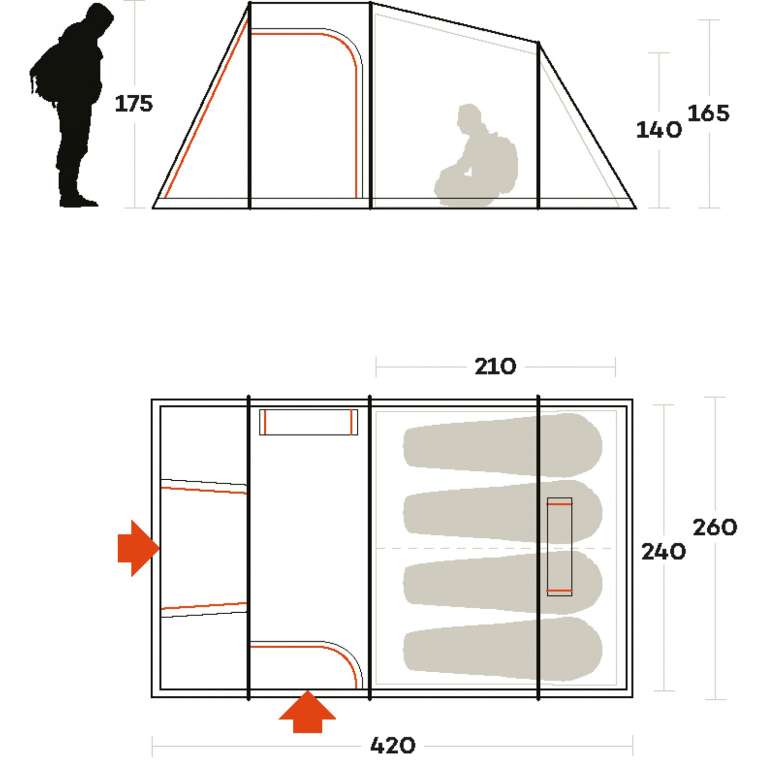 Внешняя палатка (ДхШхВ), мм: 4200 х 2600 х 1750