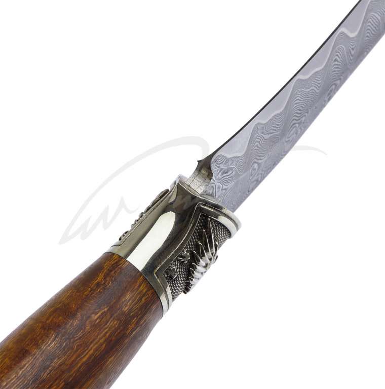 Одной из интересных особенностей является способ крепления темляка – он проходит через отверстия непосредственно в навершии рукояти, выточенной из железного дерева.