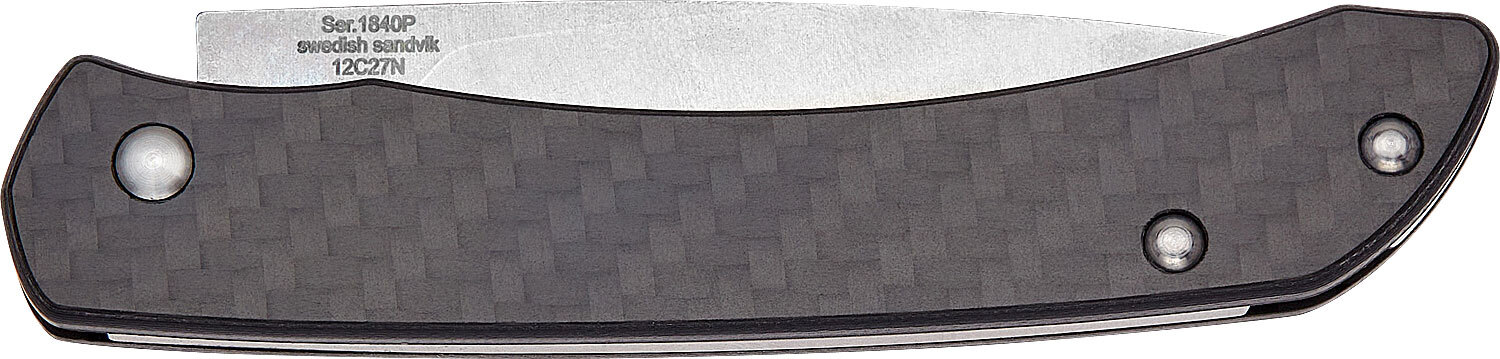 Сталью для клинка послужила не типичная для компании, мартенситная нержавеющая сталь 12С27 Sandvik шведского производства, которая пользуется популярностью среди европейских производителей режущих инструментов за счет своих оптимальных характеристик и доступной цены.
