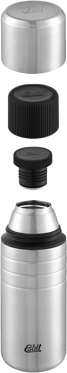 Термосы Esbit VF1000TL - объемом 1 литр, Esbit VF750TL – объемом 750 и VF500TL - объемом 500 мл с двойными стенками хорошо сохраняют температуру как горячих, так и холодных напитков. Модели выполнены из прочного материала - нержавеющей стали. Матовые стенки шершавые на ощупь и лучше противостоят мелким царапинам, чем гладкая поверхность, а еще такая поверхность за счет своей текстуры не скользит в руке. Внутренняя пробка термосов имеет специальную форму, срезанная по бокам резьба позволяет наливать напиток, не открывая полностью крышку, такая технология предотвращает теплопотери. Термос немецкой компании Esbit модели VF1000TL и модели VF750TL поставляются в комплекте с двумя крышками, которые можно использовать вместо чашек, одна внешняя из стали, а другая внутренняя из пищевого пластика, поэтому горячим напитком можно наслаждаться не по очереди, а вместе, что значительно сэкономит время на перерывы в турпоходе.