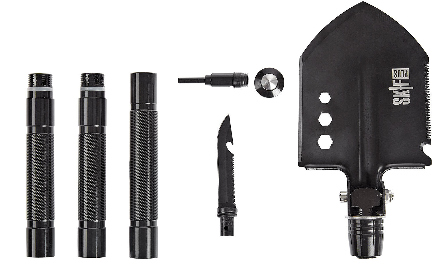 Складная лопата Skif Plus является современным образцом многофункциональной лопаты, которая помимо своей складной конструкции объединяет в себе сразу несколько важных инструментов: лопату, нож, пилу, топор и открывалку для бутылок. В зависимости от модификации могут также присутствовать и более узконаправленные инструменты.