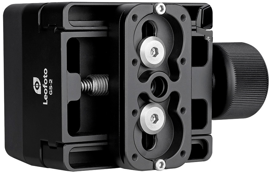 Зажим GS-2 от компании Leofoto - это простой и надёжный элемент для фиксации винтовки на треноге. Он представляет собой механизм в виде двух рабочих частей и горизонтальных винтов для удержания ложи винтовки и переходника крепления к базе треноги или штатива.