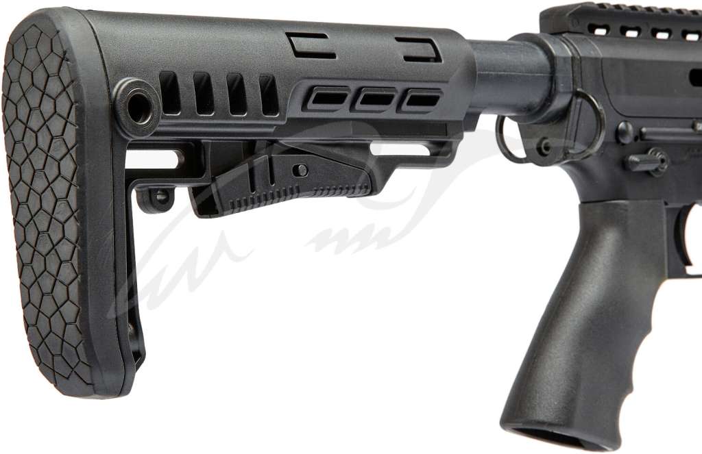 Регулируемый по длине приклад позволяет подогнать карабин под антропометрические особенности большинства стрелков. На прикладе присутствует разъем для QD-антабки.
