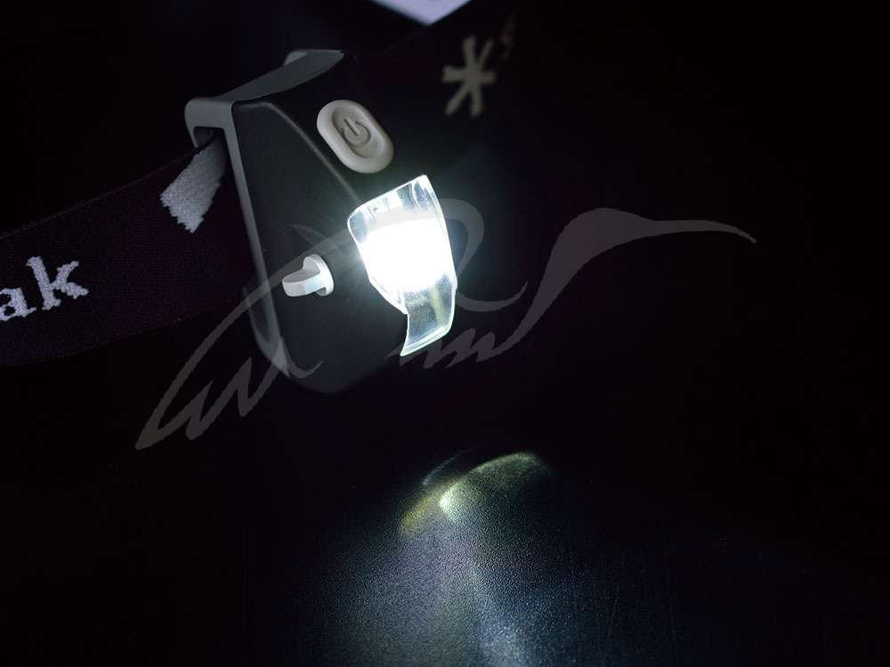 Налобный фонарь Snow Peak Mola – отличное решение для тех, кому нужно качественное освещение и свободные руки. Благодаря наличию противовеса в конструкции модели – луч света будет следовать за движениями головы пользователя во время наклонов. При необходимости, данную функцию можно отключить, дабы не заслепить собеседника. Максимальная яркость фонаря составляет 110 люмен с дальностью светового луча до 40 метров, чего будет достаточно для освещения близких и средних дистанций. Работоспособность фонаря обеспечивается двумя батарейками доступного формата ААА.