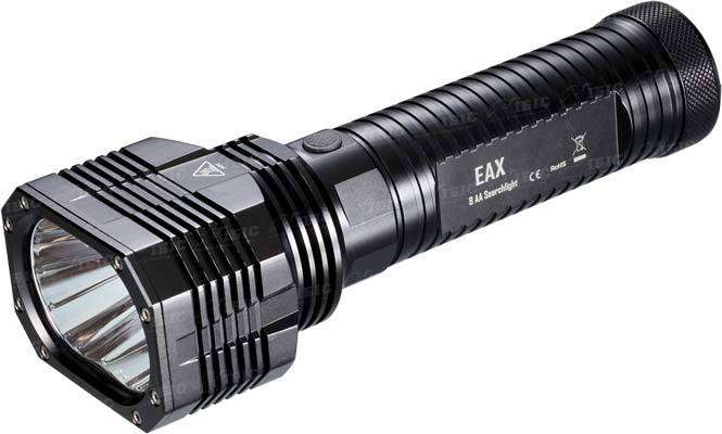 Nitecore EAX Hammer - це універсальний пошуковий ліхтар середніх розмірів, на двох сучасних потужних світлодіодах XM-L2, видають світловий потік в 2000 люмен з максимальною дальністю освітлення в пів-кілометра. Головна особливість цього «пошукача» в тому, що він працює від звичайних пальчикових батарейок/акумуляторів в кількості 8 штук. Але якщо раптом батарейки в ліхтарі сіли і з собою немає всіх восьми елементів живлення, можна встановити 6 або 4 батарейки і ліхтар буде продовжувати світити.