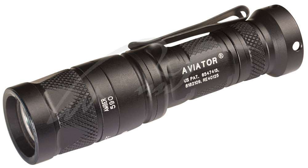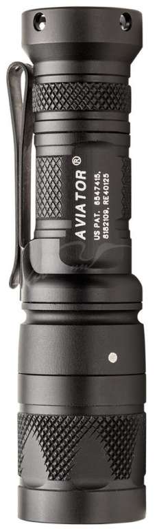 Ліхтар SureFire Aviator – відмінний приклад компактності і багатофункціональності. Дана модель здатна генерувати відразу 2 види світла: білий і червоний, призначений для збереження нічного зору. Конструкція ліхтаря виконана з авіаційного сплаву алюмінію з анодуванням максимальної (III) ступеня, завдяки чому модель захищена від падінь і подряпин. Оптична система представлена TIR-лінзою, яка ідеально підійде для освітлення близьких і середніх дистанцій. Працездатність SureFire Aviator забезпечується 1 батарейкою CR123A забезпечує максимальну автономність до 20.5 годин в режимі білого світла і 57 годин в режимі червоного світла. Управління ліхтарем здійснюється за допомогою торцевої кнопки і кільця між головною та основною частиною корпусу.