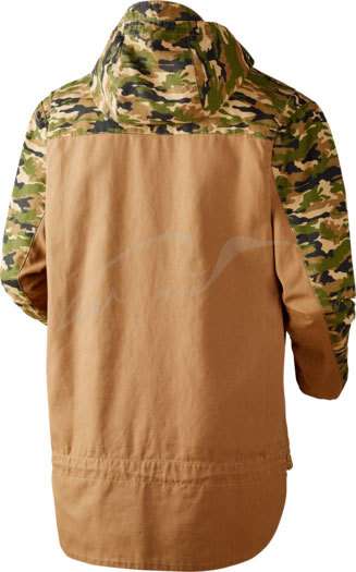 Анорак Feral Smock у камуфляжному забарвленні Seeland GP Camo розроблений спеціально, щоб зливатися з весняно-літньою рослинністю. За властивостями дана модель не відрізняється від куртки Seeland Feral – відмінності, звичайно ж, в дизайні. На грудній частині куртки є універсальна, велика кишеня, наприклад для бінокля. Крім цього присутні бічні кишені на кнопках. Рукава зручно утримуються на кистях рук еластичними манжетами. Для зручності зняття анорака, воріт розстібається за допомогою кнопок. Капюшон оснащений захисним козирком.