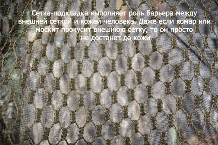 Антимоскитный костюм фірми "SHANNON OUTDOORS" США спеціально розроблені для мисливців і рибалок. Костюм на 100% захищає від комарів, мух та кліщів. Спеціальна тканина Bug Тамег Plus Double-Guard, являє собою подвійну сітку. Внутрішній шар - велика сітка, а зовнішній - легка, м'яка мелкосетчатая тканина. Камуфлирован забарвленням Mossy-Oak.