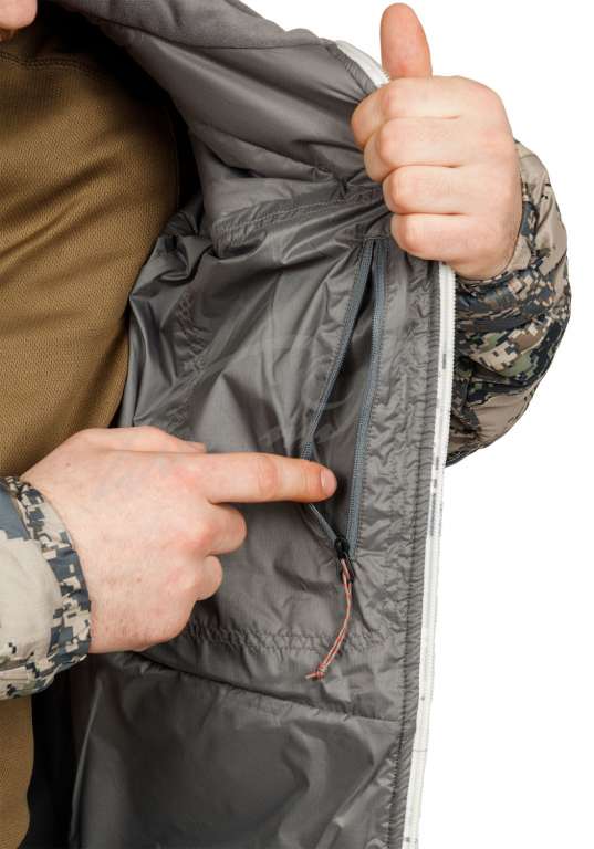 - утеплювач PrimaLoft®one - створений для максимальної консервації тепла при мінімальній власній вазі, серія утеплювачів Kelvin від Sitka представляє найкраще співвідношення між цими показниками на ринку. Найтепліший елемент екіпіровки – утеплювач, використовується безпосередньо ПІД зовнішнім шаром, будь то абсолютний або помірно-оптимальний зовнішня одяг. При виготовленні виробів цієї серії використовуються технології мікроволокна PRIMALOFT, найближчого за характеристиками до натурального пуху по структурним, термальним і чуттєвим характеристикам. Це єдиний наповнювач, в якому кожне волокно має постійну, водостійку обробку. Володіє такими якостями як: вологонепроникність, вітрозахист, паропроникність, здатність просихати швидше, ніж натуральний пух