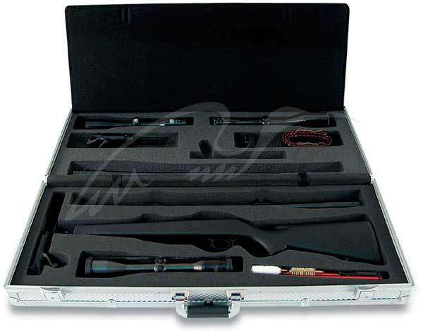 Кейс дозволяє одночасно транспортувати карабін системи Take-Down (2 ствола ложе з УСМ) і три прицілу. Також є три відділення для аксесуарів і комплектуючих і отдление для шомпола(ів).