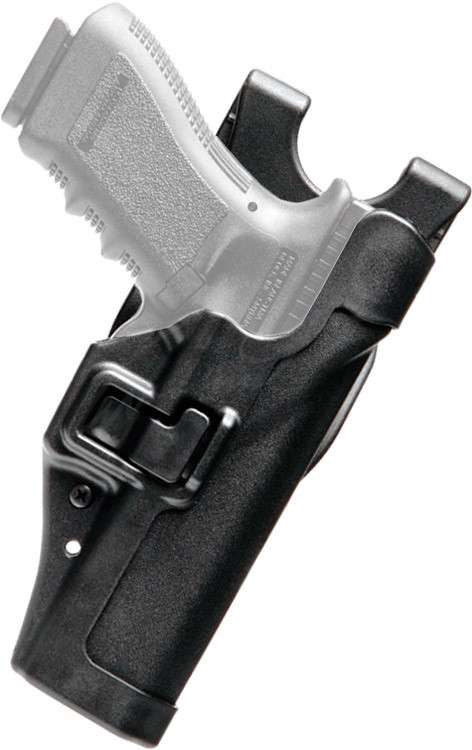 Технологія SERPA® Auto Lock Technology™ дозволяє автоматично зафіксувати пістолет в кобурі при його вкладення. При цьому витягнути зброю з кобури можна тільки при натисканні кнопки відкриття замку, яка знаходиться під вказівним пальцем (Level 2).