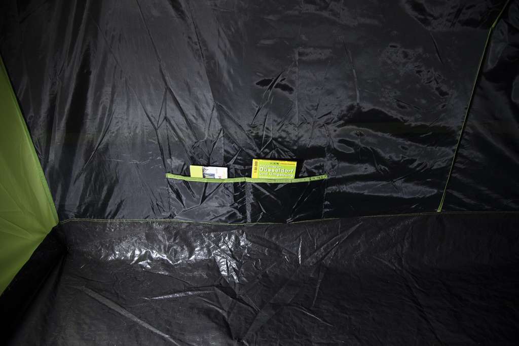 Затемненная спальня не пропускает яркий свет, позволяя выспаться всем, кто поздно встает. Система вентиляции Vario Vent Control обеспечивает регулируемый приток свежего воздуха во внутреннюю палатку. Если похолодало, просто настройте внутреннюю заслонку. Большие двери спальни с москитными сетками защищают от насекомых и улучшают воздухопроницаемость. Дверной клапан на молнии легко регулируется изнутри и аккуратно складывается в удобный карман для хранения. Органайзер и пять внутренних карманов позволяют аккуратно хранить все необходимое. Также палатка имеет две точки крепления для фонаря. High Peak Brixen 5.0 - лучший выбор для семейного кемпинга.