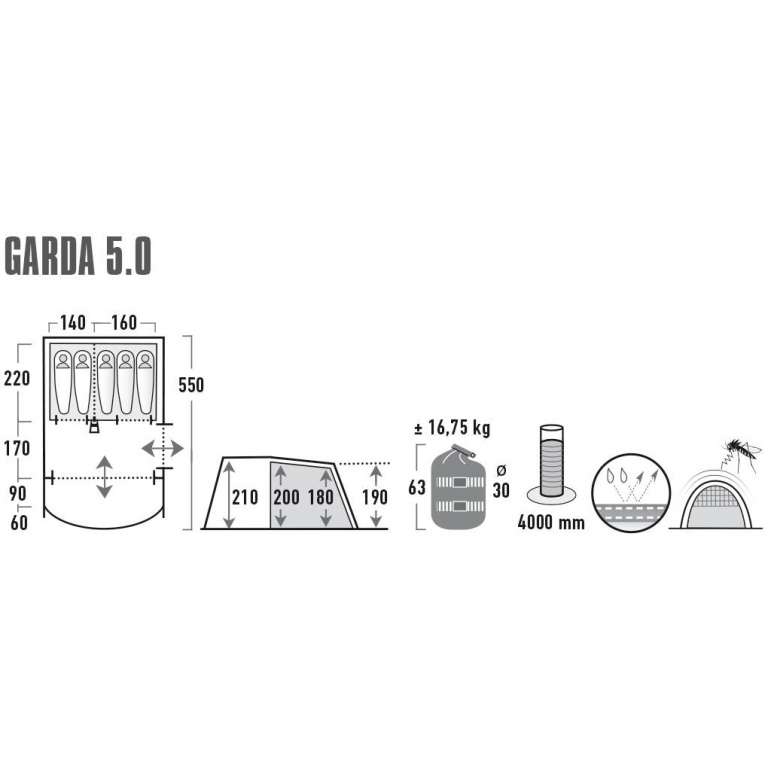 Новинка 2021 года! High Peak Garda 5.0 - семейная туннельная палатка с двумя входами, гостиной со вшитым полом, который обеспечивает защиту от назойливых насекомых и нежелательных сквозняков. Большой интегрированный навес с прозрачными окнами создает тень и помогает предотвратить попадание дождя внутрь при открывании двери. Переднюю стенку можно свернуть, чтобы увеличить полезную площадь палатки. Жилая зона с высотой потолка 2,1 м позволяет стоять в полный рост, а также имеет достаточно места для размещения кемпинговых стульев, стола и походного снаряжения. Фронтальные сетчатые двери с клапаном на молнии обеспечивают постоянный приток свежего воздуха в палатку. Боковая сетчатая дверь увеличивает приток свежего воздуха и защищает от насекомых. Прозрачные окна в жилой зоне наполнят помещение светом, а шторы при необходимости обеспечат уединение. Крыша имеет теплоотражающее алюминизированное покрытие, снижающее повышение температуры внутри палатки днем в солнечную погоду.