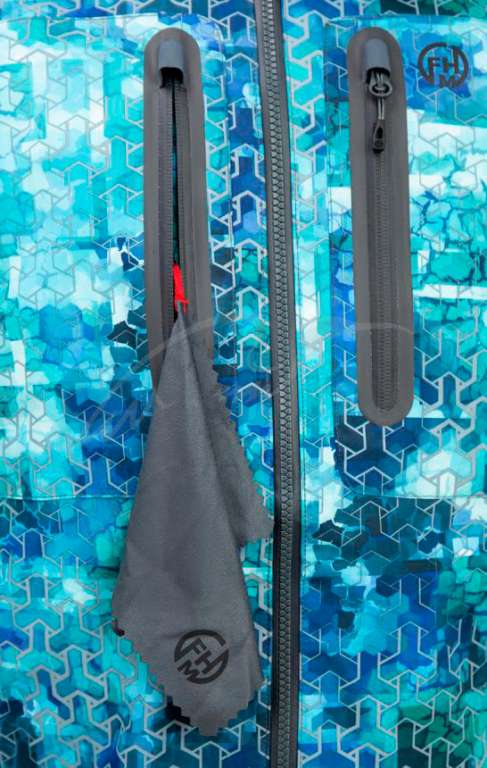 Куртка FHM Guard разработана специально для рыбаков, которых не испугать плохой погодой. Ее внешний слой выполнен из инновационной высокотехнологичной ткани с полиуретановой гидрофильной мембраной - Dermizax, которая производится в Японии. Паропроницаемость обеспечивается свойствами мембраны, а не за счет микроскопических отверстий, благодаря такой технологии поры не засоряются и мембрана хорошо отводит испарения от тела, а теплый воздух остается возле тела. В боковом шве под рукой предусмотрены специальные отверстия, которые можно открыть при активном движении, что способствует дополнительной вентиляции. Куртка Guard - это штормовая экипировка, которая способна защитить от дождя и брызг воды, поэтому она отлично подходит для рыбалки, отдыха на воде и походов на работу в весенне - осенний период. Материал данного изделия максимально неприхотлив и не требует дополнительного ухода. Для максимальной защиты спины от холода, в зоне поясницы куртка удлиненная. Предусмотрена внутренняя планка, для защиты проникновения холодного ветра сквозь молнию, верхний клапан препятствует защемлению кожи подбородка. Специальный крой не сковывает движений. Высокий воротник защищает шею от холода, а регулируемый капюшон при необходимости сворачивается и прячется в воротник. Во внешнем нагрудном кармане предусмотрена специальная салфетка для протирания оптики и очков. Манжеты регулируются с помощью текстильных липучек. Во внутреннем кармане предусмотрен пластиковый небольшой карабин для ключей.