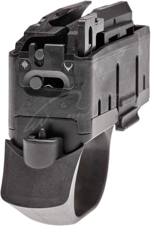Революционным решением стал переход на быстросъемный магазин, сделавший обслуживание карабина более удобным, а его дозарядку на охоте – мгновенной. В борьбе за сохранение компактности был разработан уникальный дизайн магазина – он выполнен единым блоком вместе со спусковой скобой и крючком. Узел надежно крепится в ствольной коробке. Чтобы исключить несанкционированное открытие, магазин извлекается двумя кнопками одновременно. Если магазин извлечен, взвести оружие невозможно.